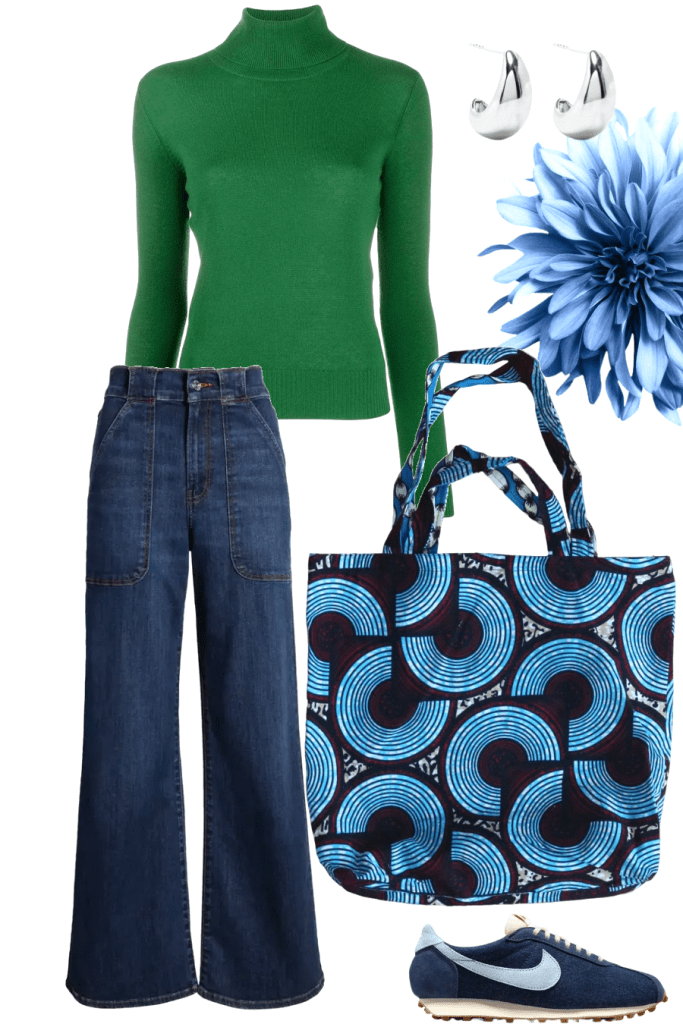 Deep greens and jewel tones embody autumn. Style the green Kacie Jacket with relaxed lounge pants and a touch of yellow for an effortless pop of colour, or opt for a green roll-neck sweater with jeans and our Zadie Tote Bag for a chic lunch look. For a polished outfit, pair the Lola Midi Skirt with green accents, a burgundy cardigan, and a matching green bag. Each look is vibrant, versatile, and perfect for chilly autumn days.